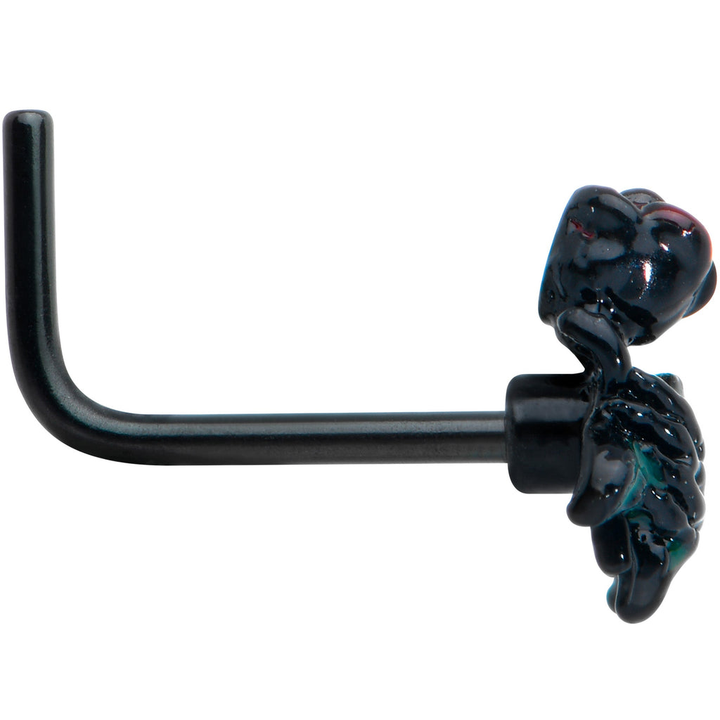 20 Gauge 7mm Black Skeleton Flower Halloween L Shape Nose Ring