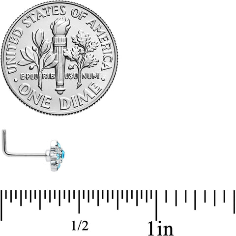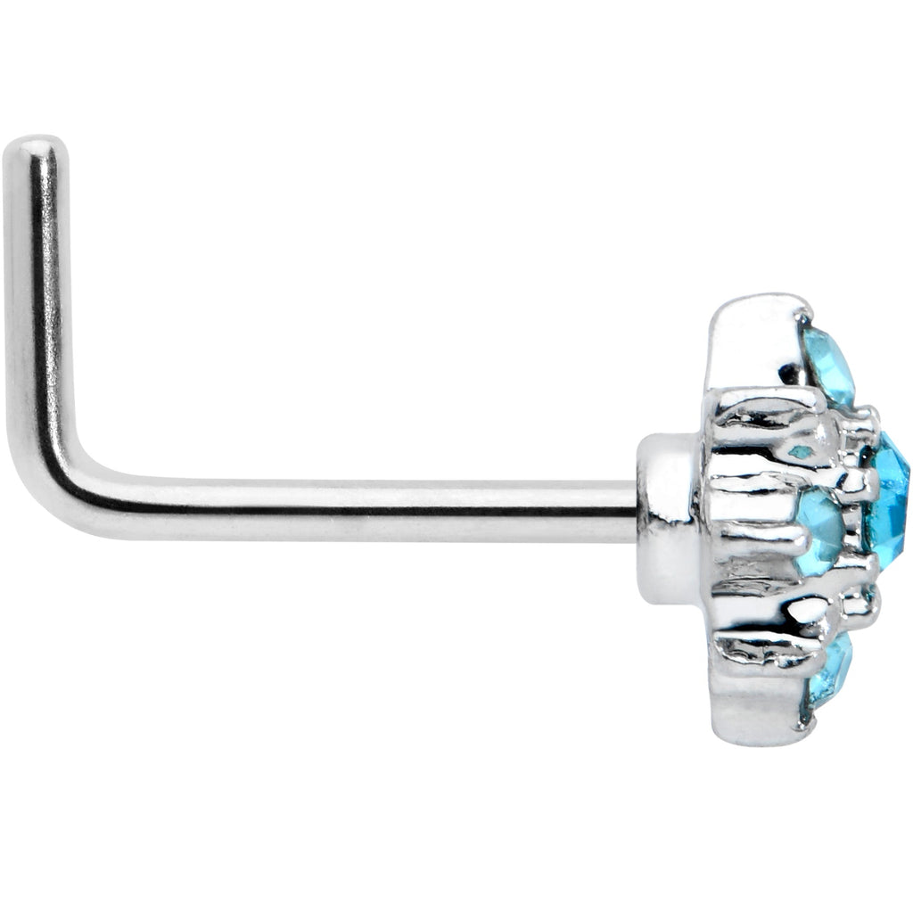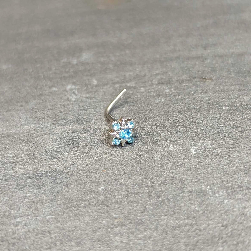 20 Gauge 7mm Blue Clear Gem Stylish Snowflake L Shape Nose Ring