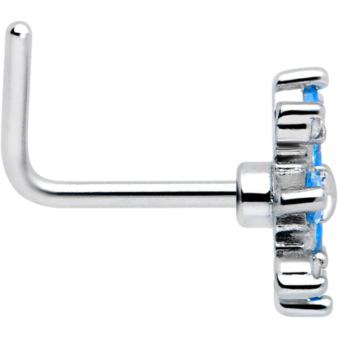 20 Gauge 7mm Blue CZ Gem Classic Flower L Shape Nose Ring