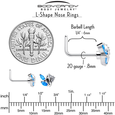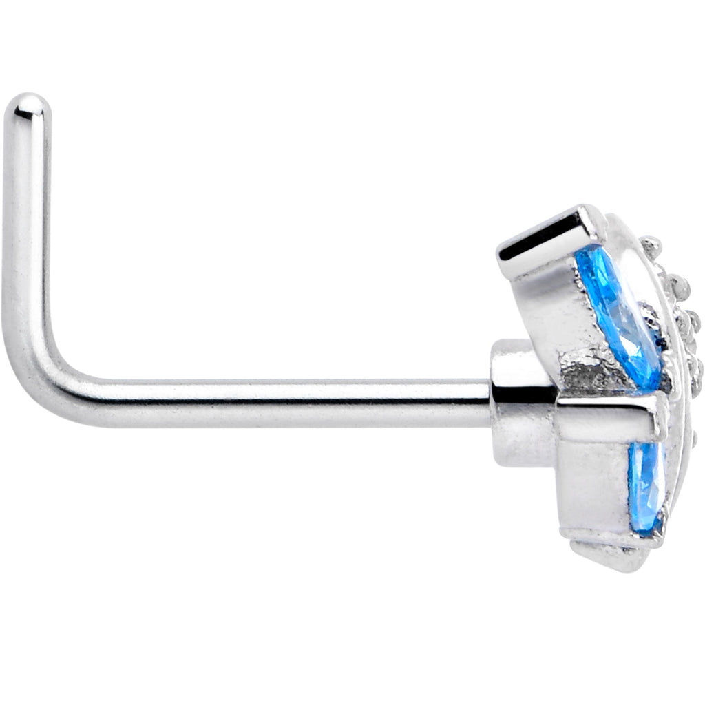 20 Gauge 7mm Blue CZ Gem Swirl Fan L Shape Nose Ring