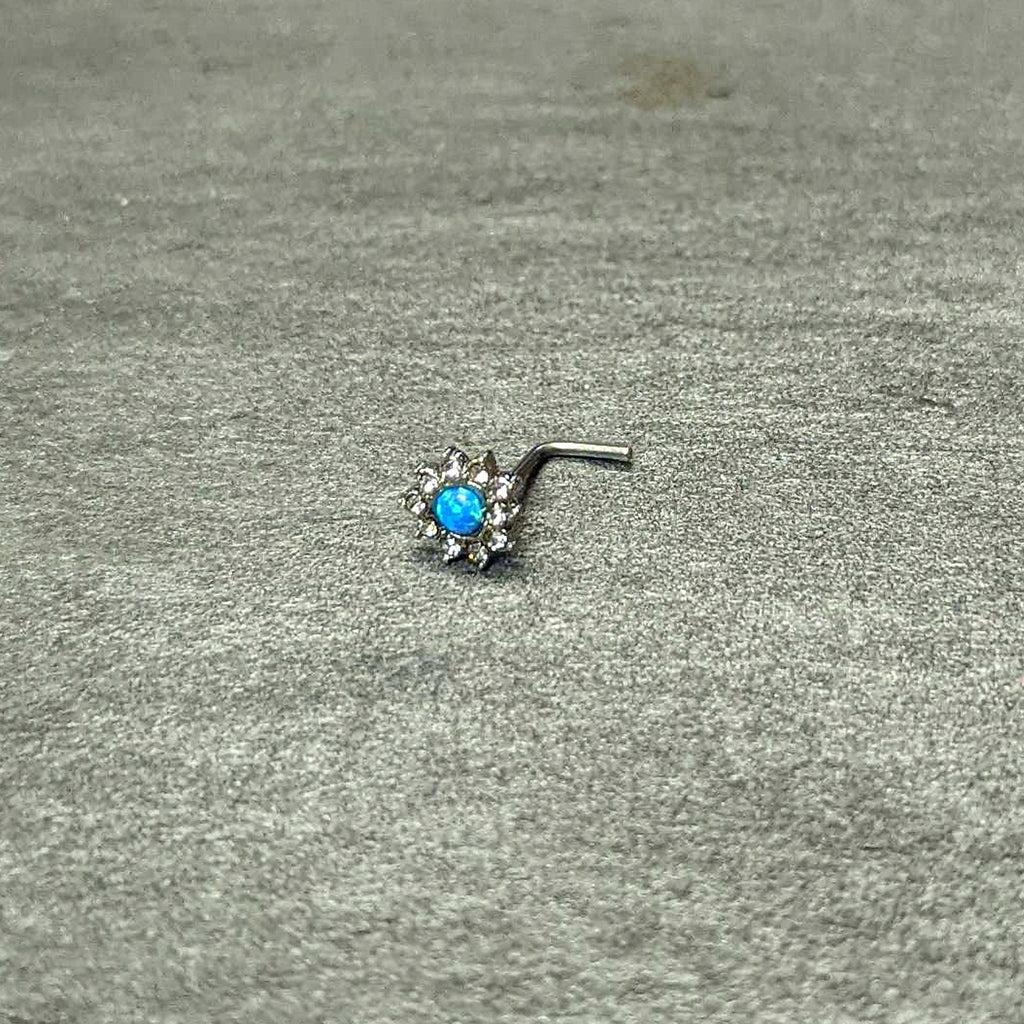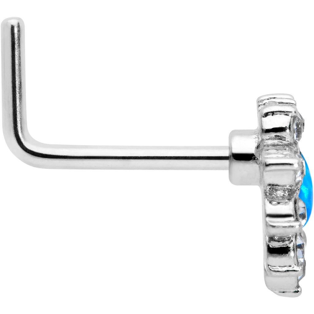 20 Gauge 7mm Blue Faux Opal Heart Sun L Shape Nose Ring