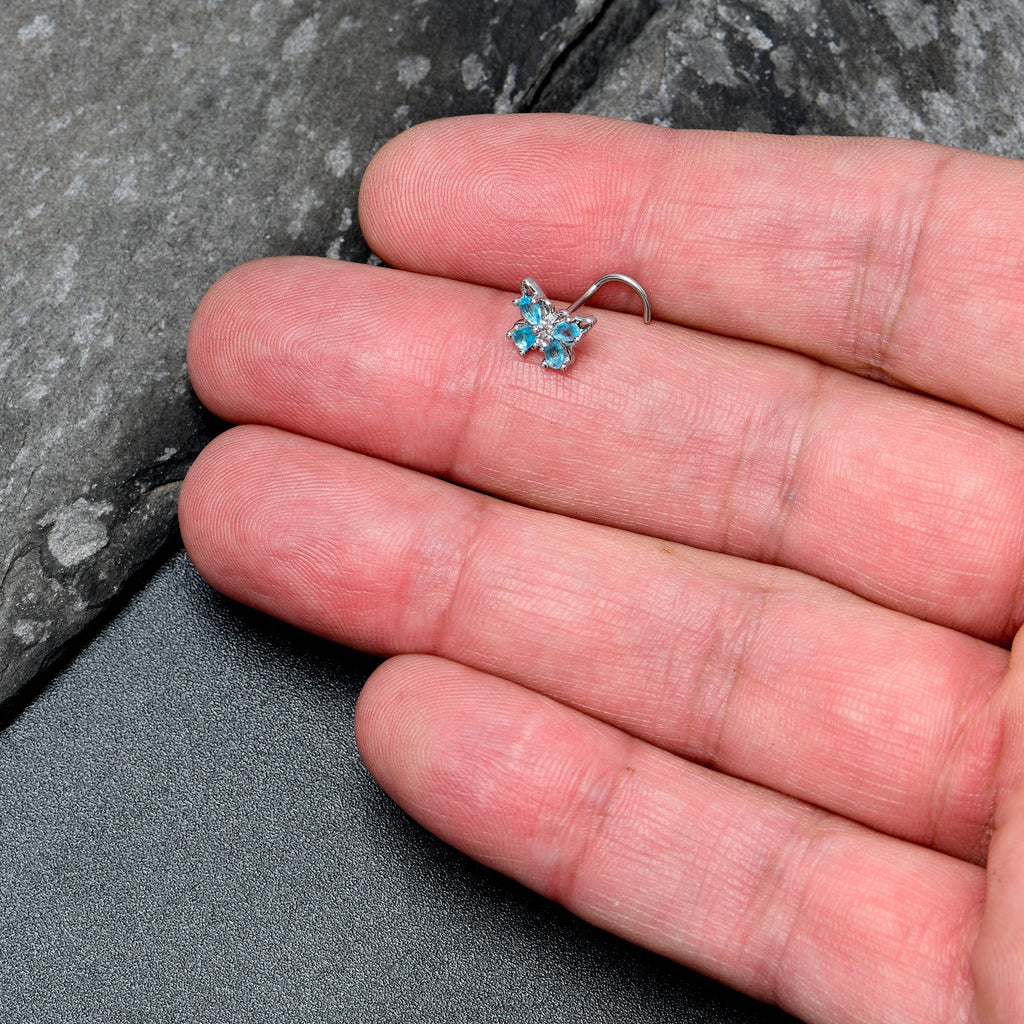 20 Gauge 7mm Blue Gem Baroque Beauty Butterfly Left Side Nose Screw