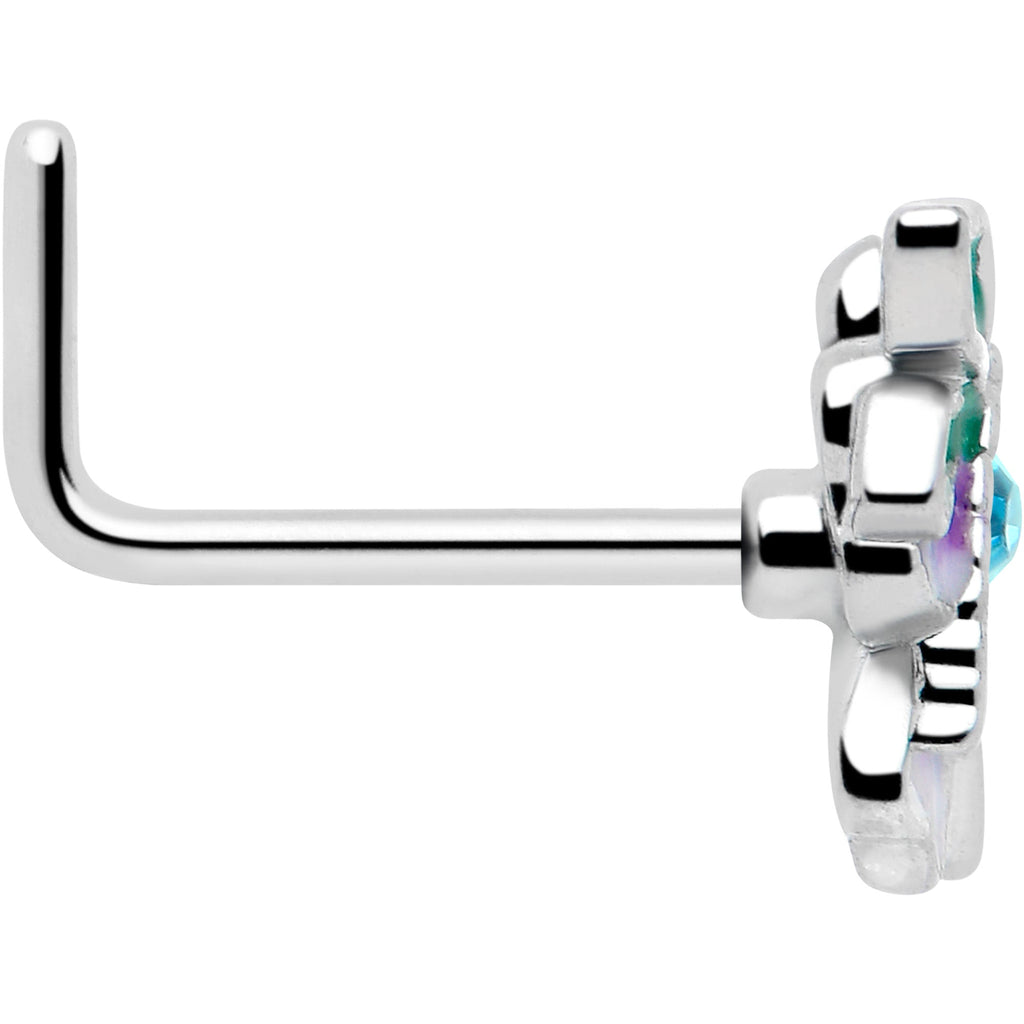 20 Gauge 7mm Blue Gem Faerie Flower Purple L Shape Nose Ring