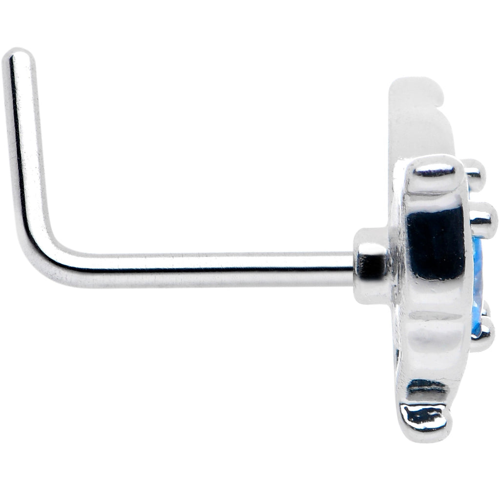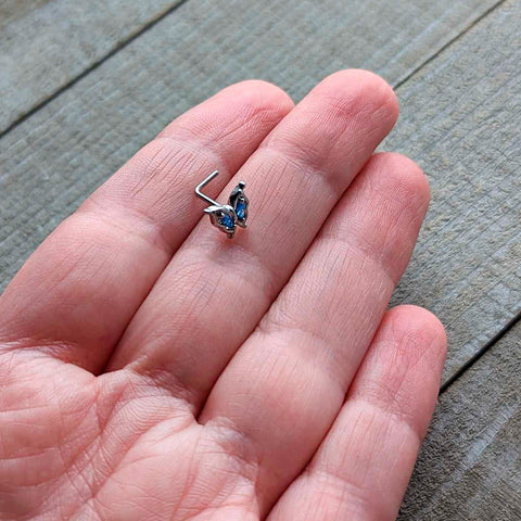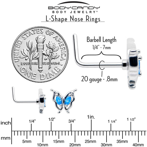 20 Gauge 7mm Blue Gem Fancy Fab Butterfly L Shape Nose Ring