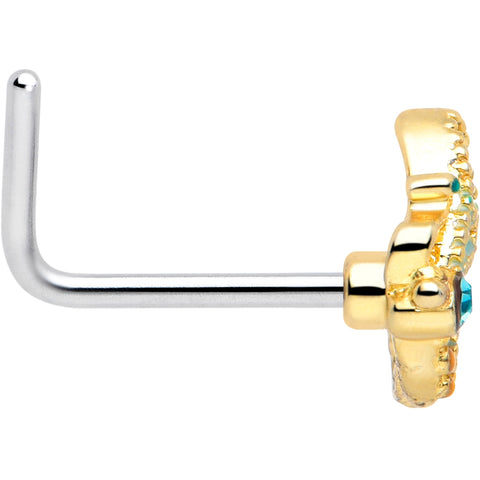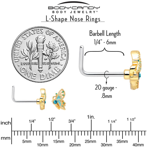 20 Gauge 7mm Blue Gem Ribbon Butterfly L Shape Nose Ring