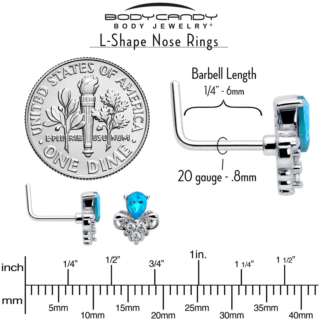 20 Gauge 7mm Blue Gem Style Simplicity L Shape Nose Ring