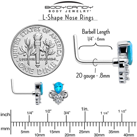 20G 7mm Blue Gem Style Simplicity L Shape Nose Ring
