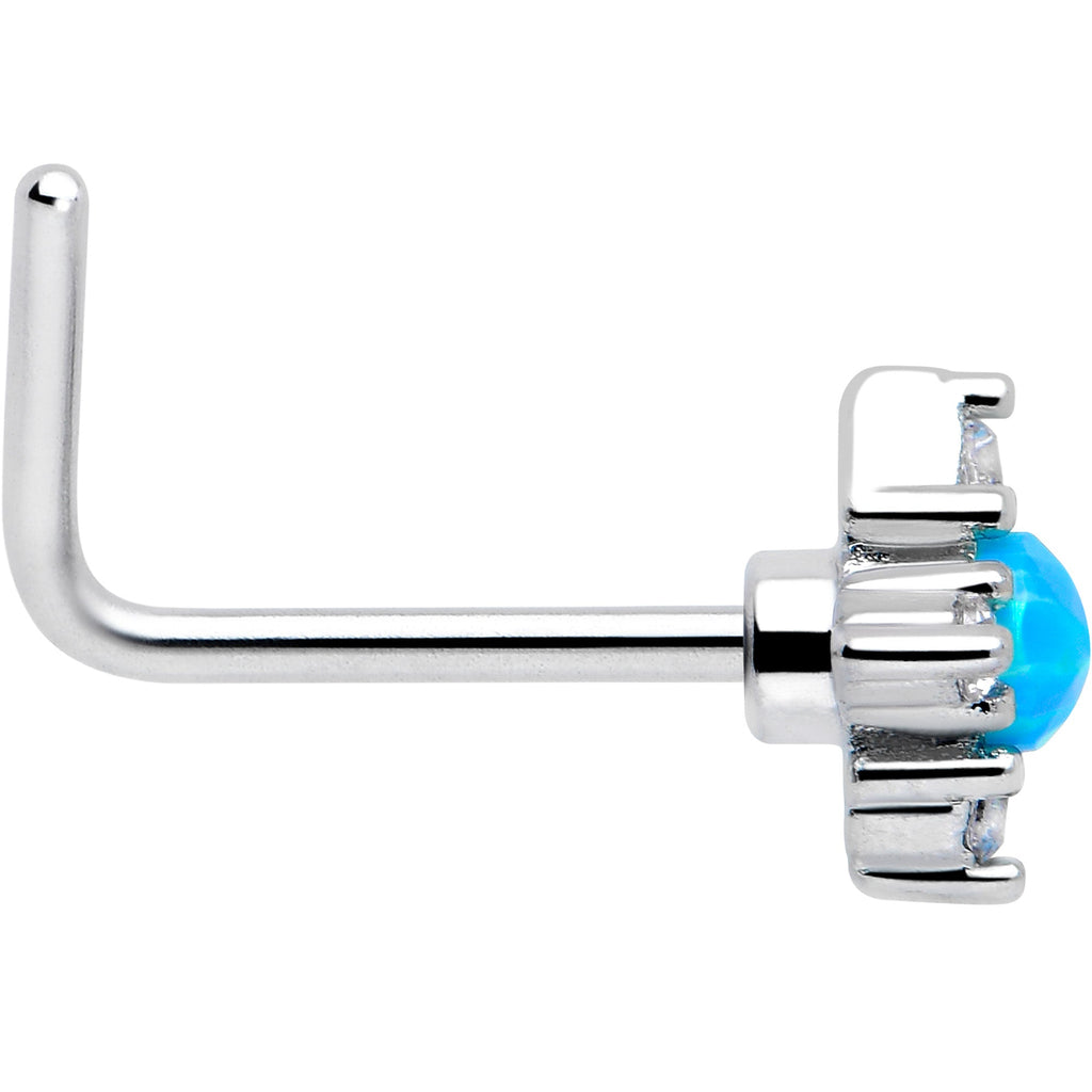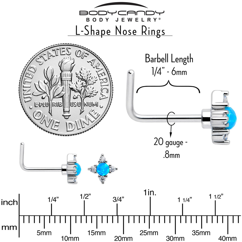 20 Gauge 7mm Blue Synthetic Opal Rhombus Star L Shape Nose Ring