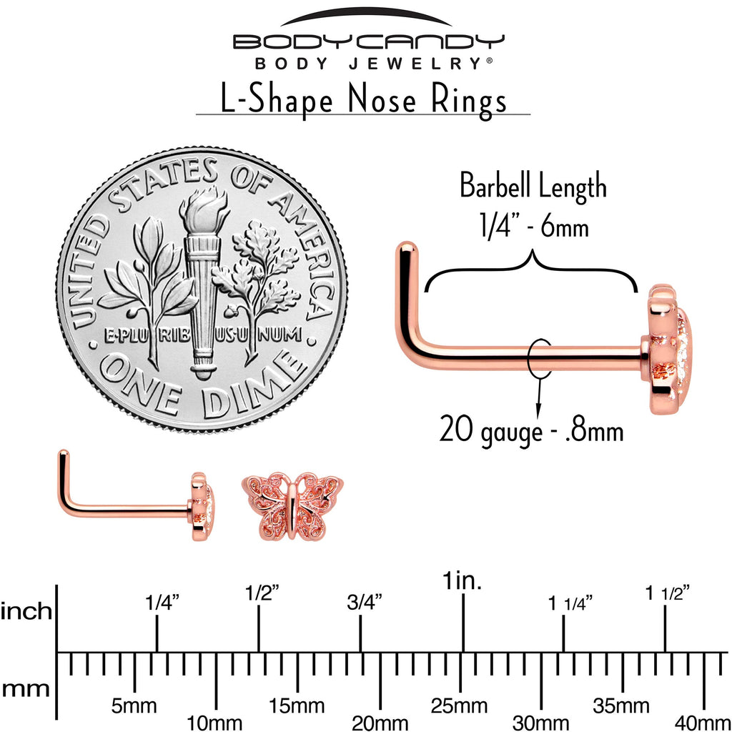 20 Gauge 7mm Butterfly Classic L Shape Nose Ring