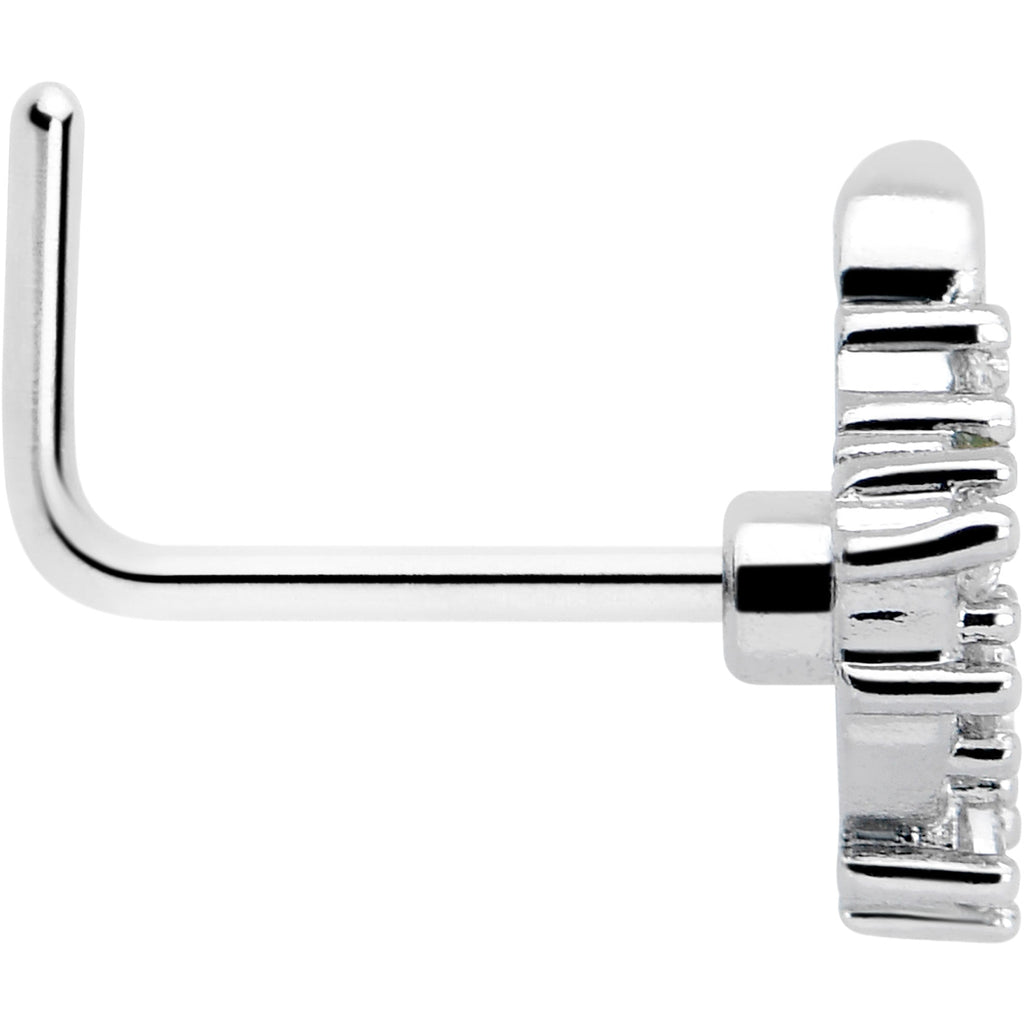 20 Gauge 7mm Clear CZ Gem Morning Leaves L Shape Nose Ring