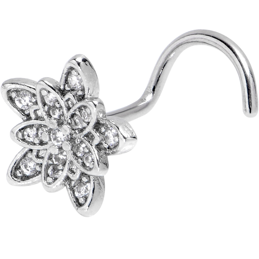 20 Gauge 7mm Clear CZ Gem Snowflake Flower Left Side Nose Screw