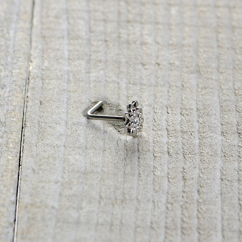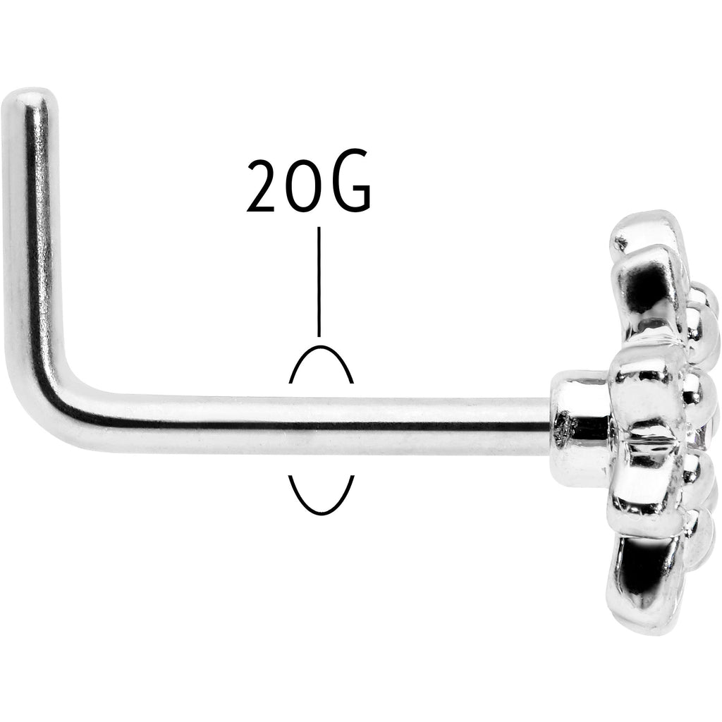20 Gauge 7mm Clear Gem Elegant Starry Flower L Shape Nose Ring