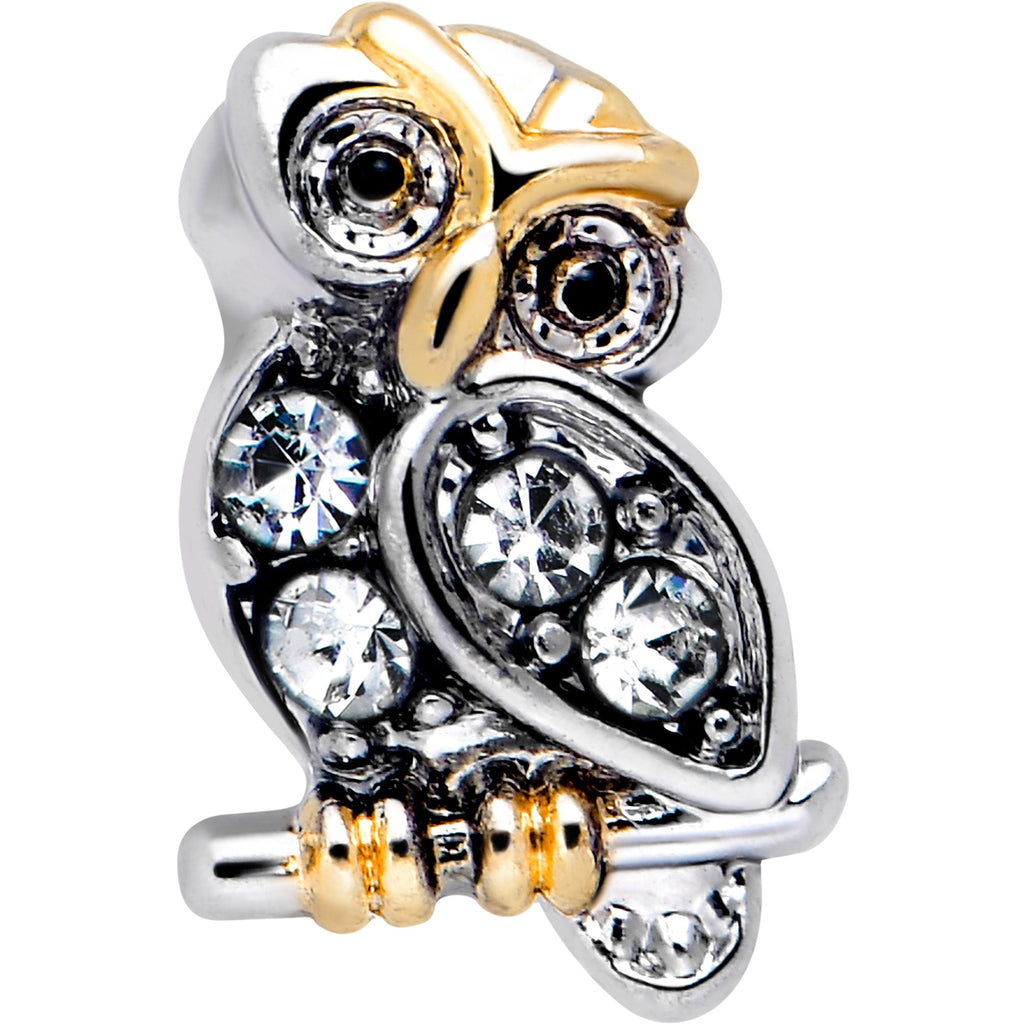 If only all the owls looked as elegant as the one on this 20 gauge nostril ring. It's made with a 0..27 inch length at the bend 316L surgical grade stainless steel L-shaped post. It features an owl charm with clear gems. It also features gold tone embellishment for a truly striking combination of forest and fancy that's sure to attract attention. When you're rocking this elegant evening owl nose piercing jewelry, you're sure to look like avian aristocracy.Specifications