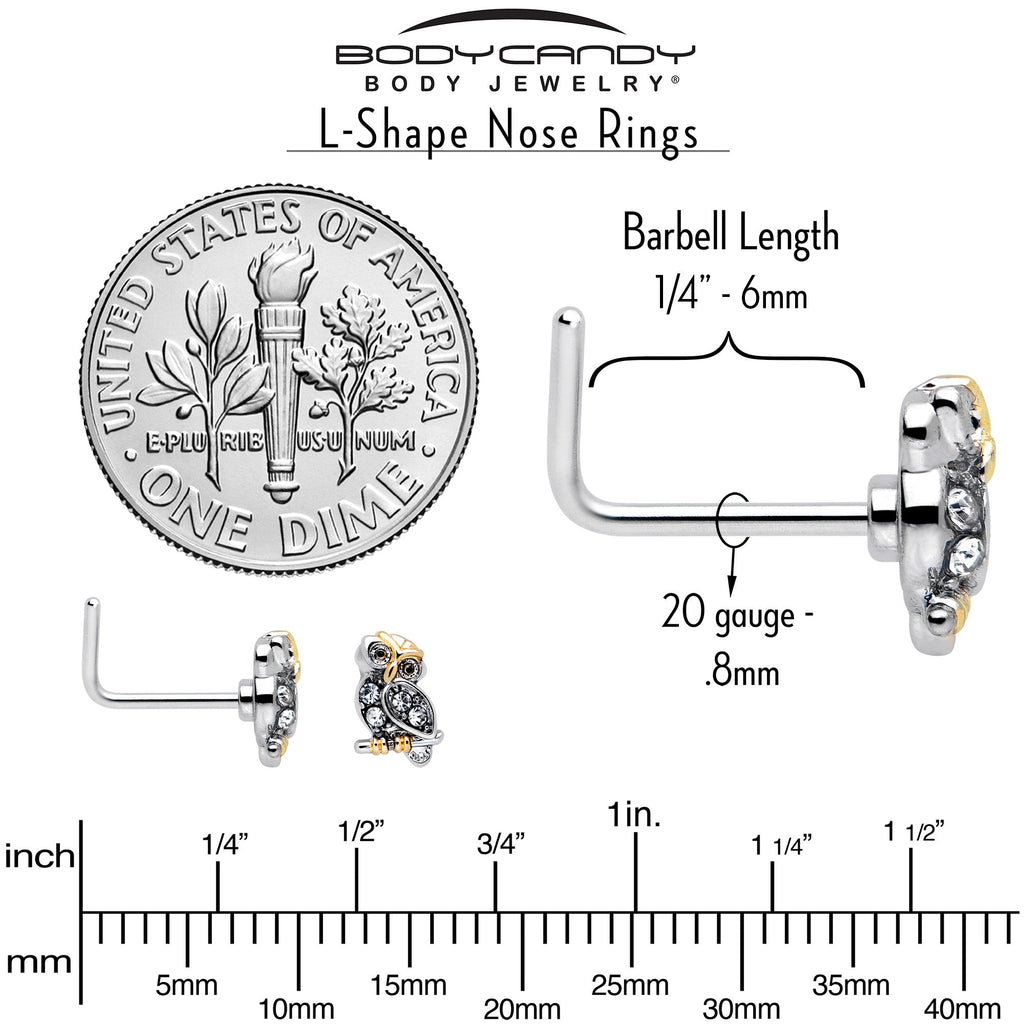 20 Gauge 7mm Clear Gem Evening Owl L Shape Nose Ring