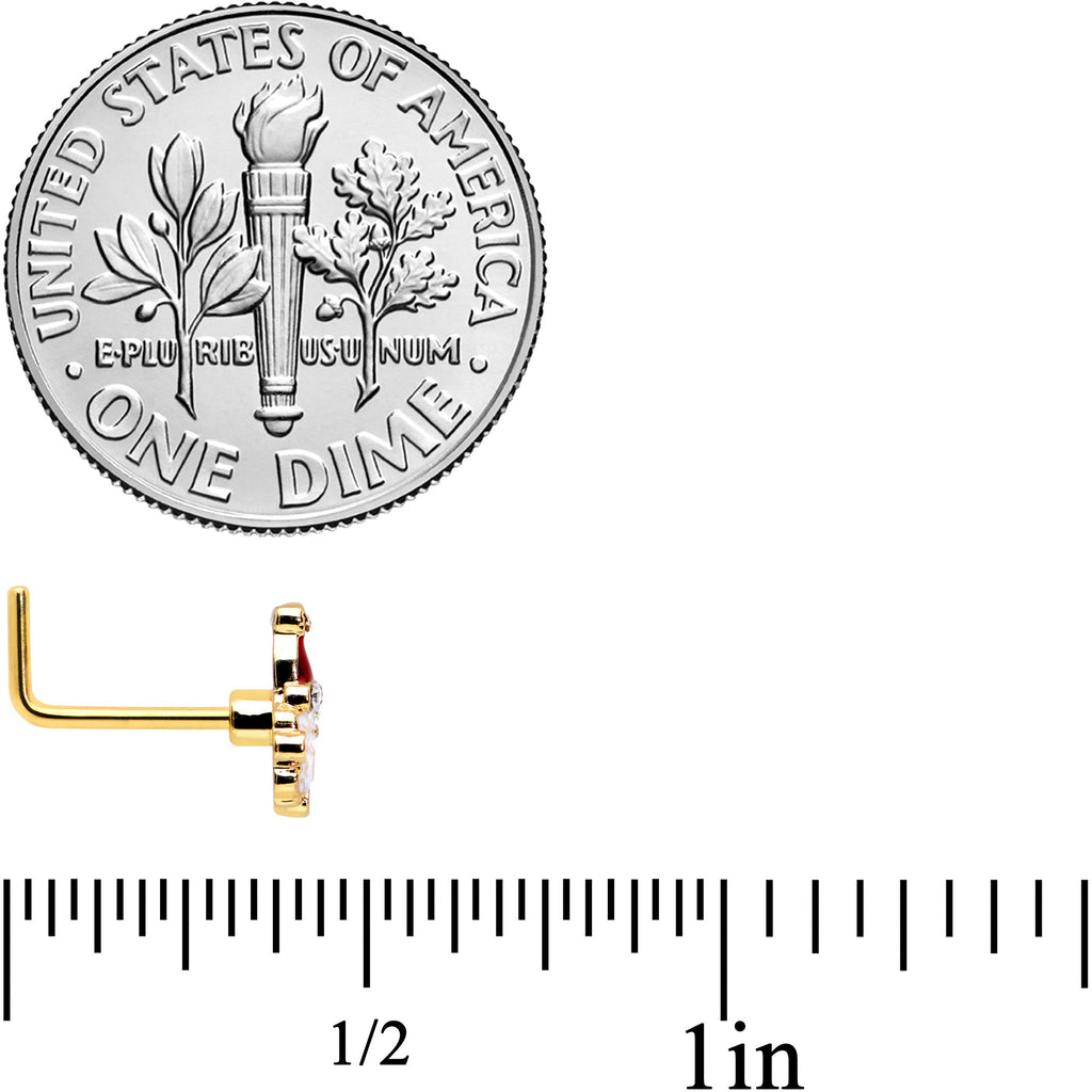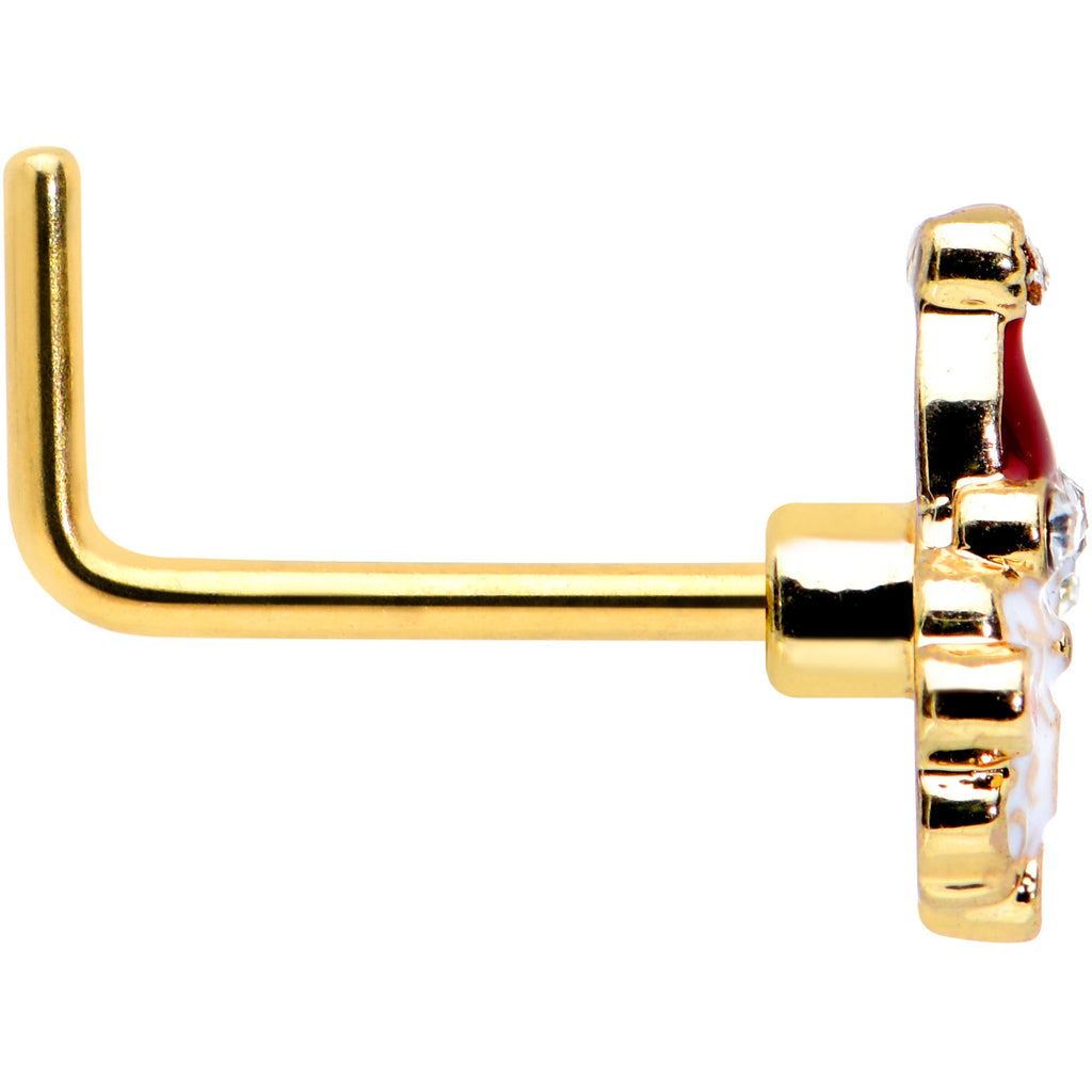 20 Gauge 7mm Clear Gem Gold Hue Deco Santa Christmas L Shape Nose Ring
