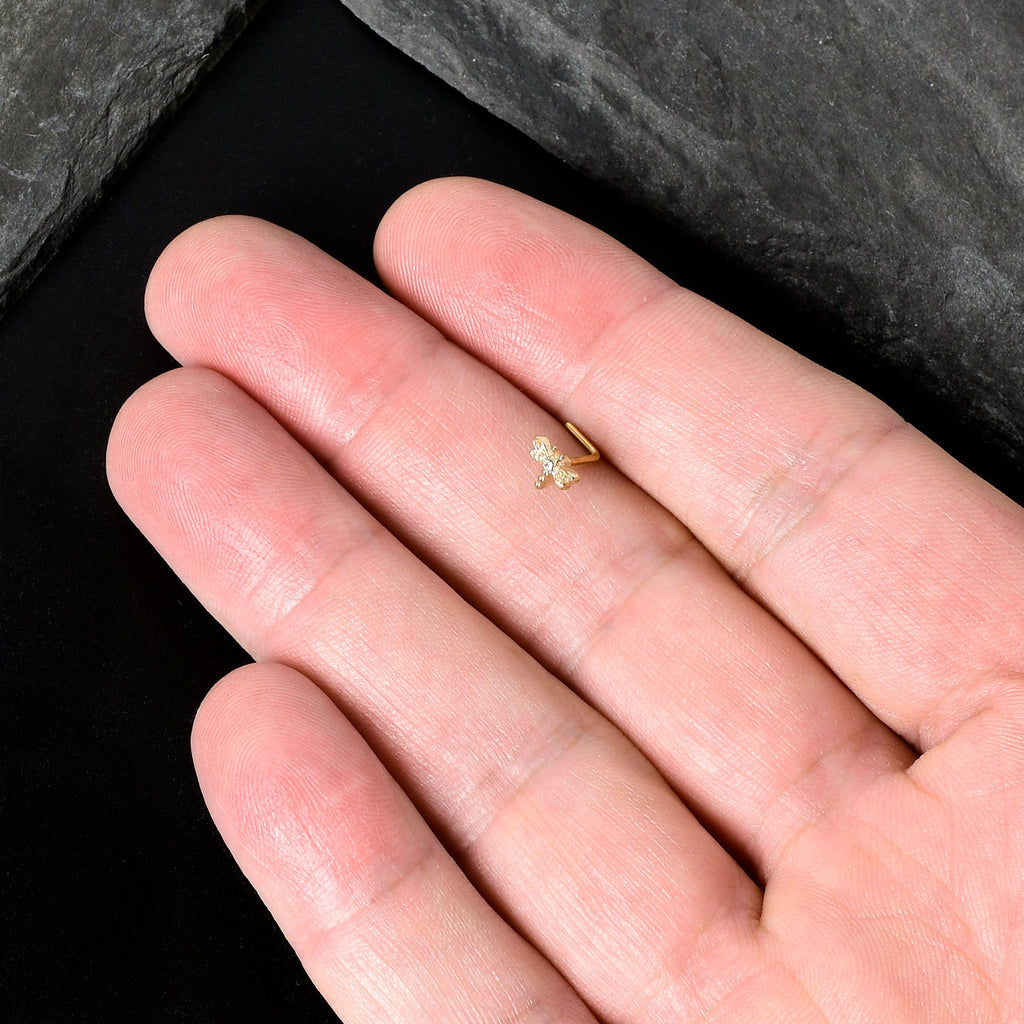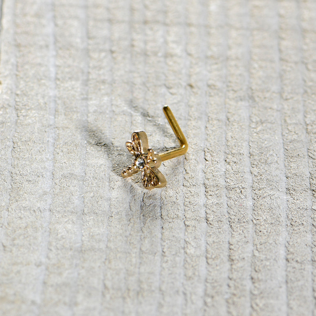 20G 7mm Clear Gem Gold Tone Flying Dragonfly L Shape Nose Ring