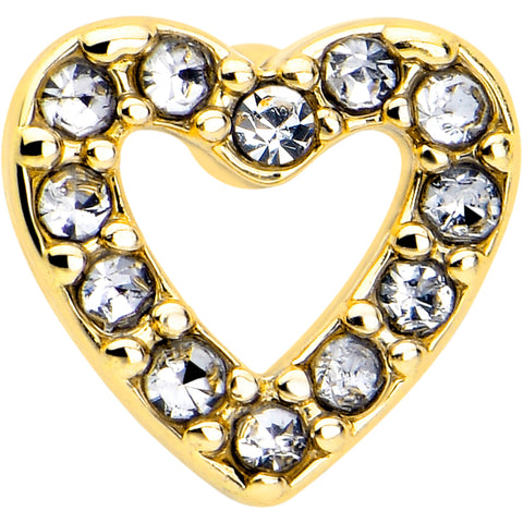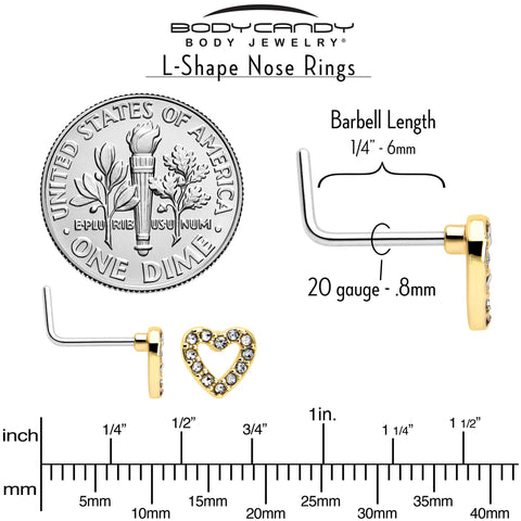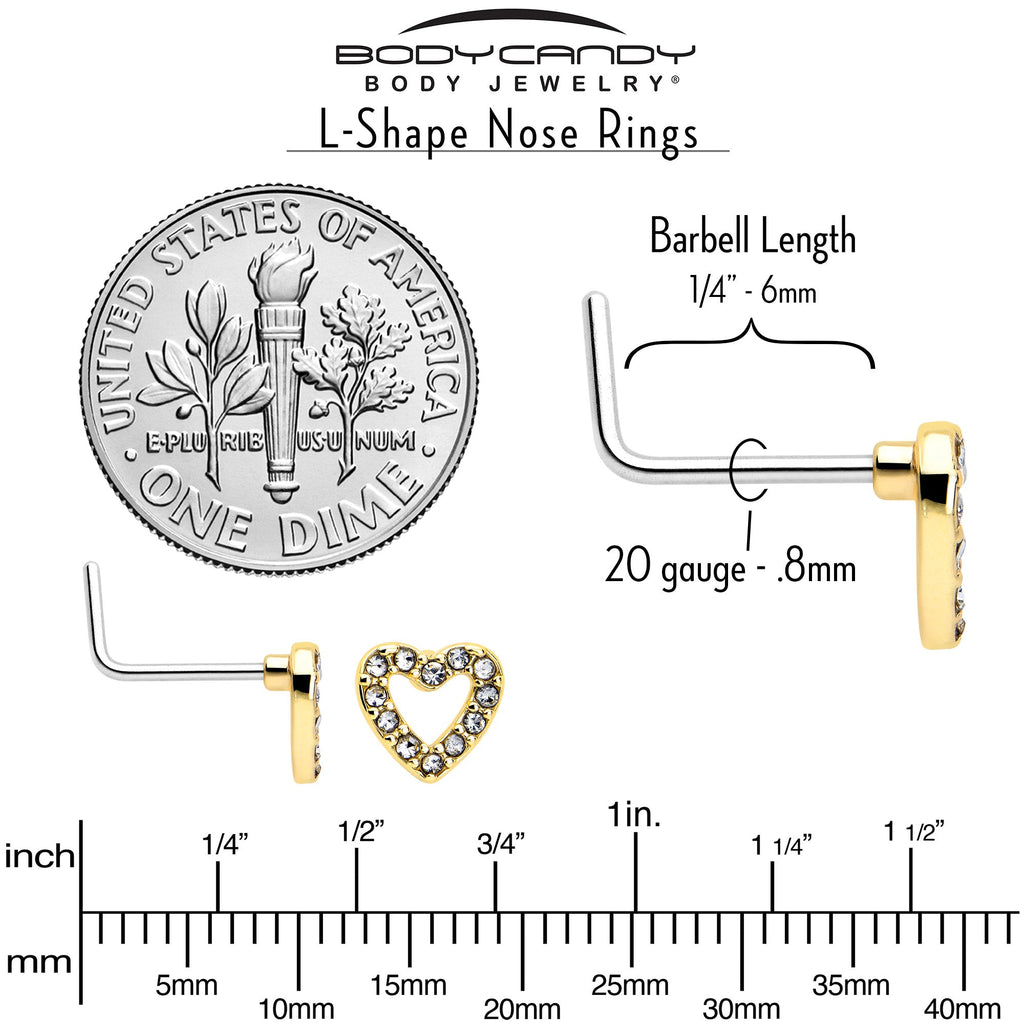 20 Gauge 7mm Clear Gem Golden Hollow Paved Heart L Shape Nose Ring