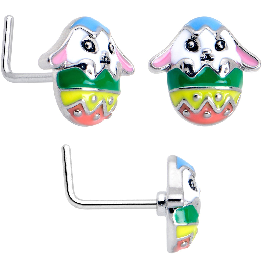 20G 7mm Easter Egg Bunny L Shape Nose Ring Set of 3