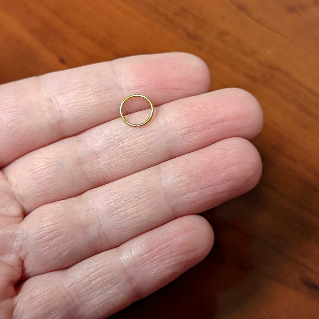 Sometimes we all need closure....sometimes we just need some awesome jewelry like this 20 gauge nostril ring! It's made with a .27" gold tone PVD over solid grade 23 implant grade titanium circular ring. It features durable materials as well as simple style that never goes out of fashion. It also features rounded ends to make insertion and removal super comfortable. This hoop ring is super easy to insert and remove - simply twist the ring open, insert, and then twist gently shut again. Put some quality elegance in your nose piercing with this understated nostril piercing ring! This bendable titanium hoop can be used for multiple piercings including lip ring, ear piericngs and nose hoop.
