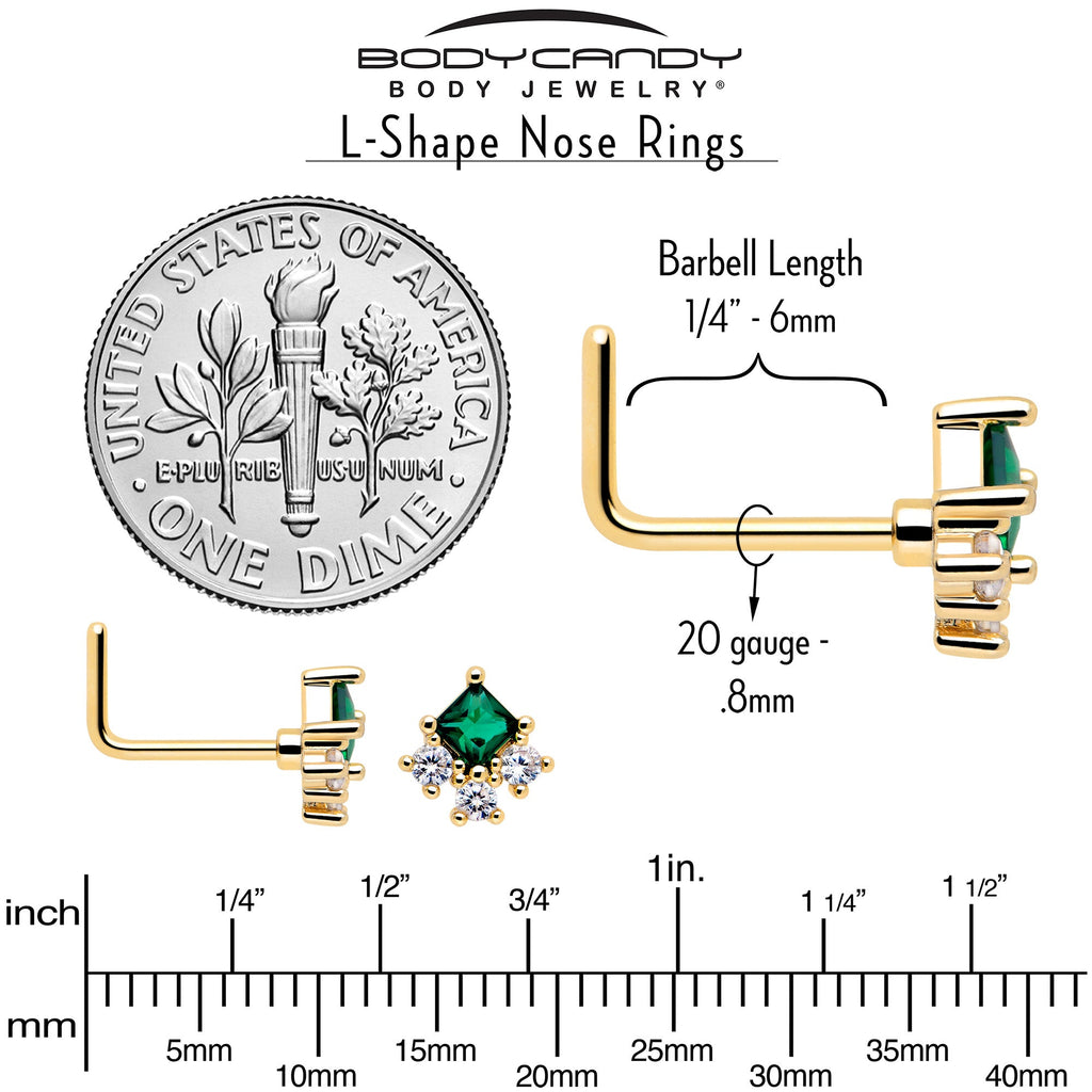 20 Gauge 7mm Green CZ Gem Gold Tone Rhombus Riot L Shape Nose Ring
