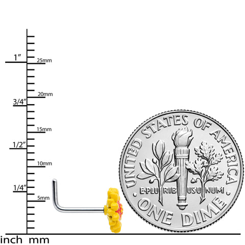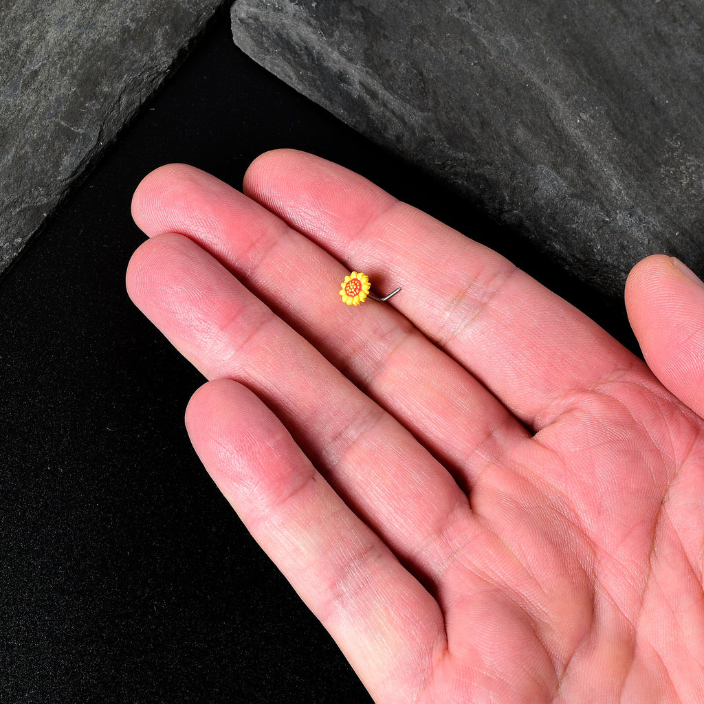 20 Gauge 7mm Happy Yellow Sunflower L Shape Nose Ring