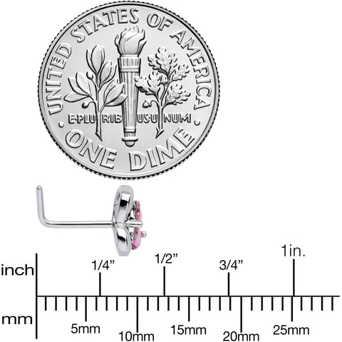 20 Gauge 7mm Heart Pink Butterfly L Shape Nose Ring