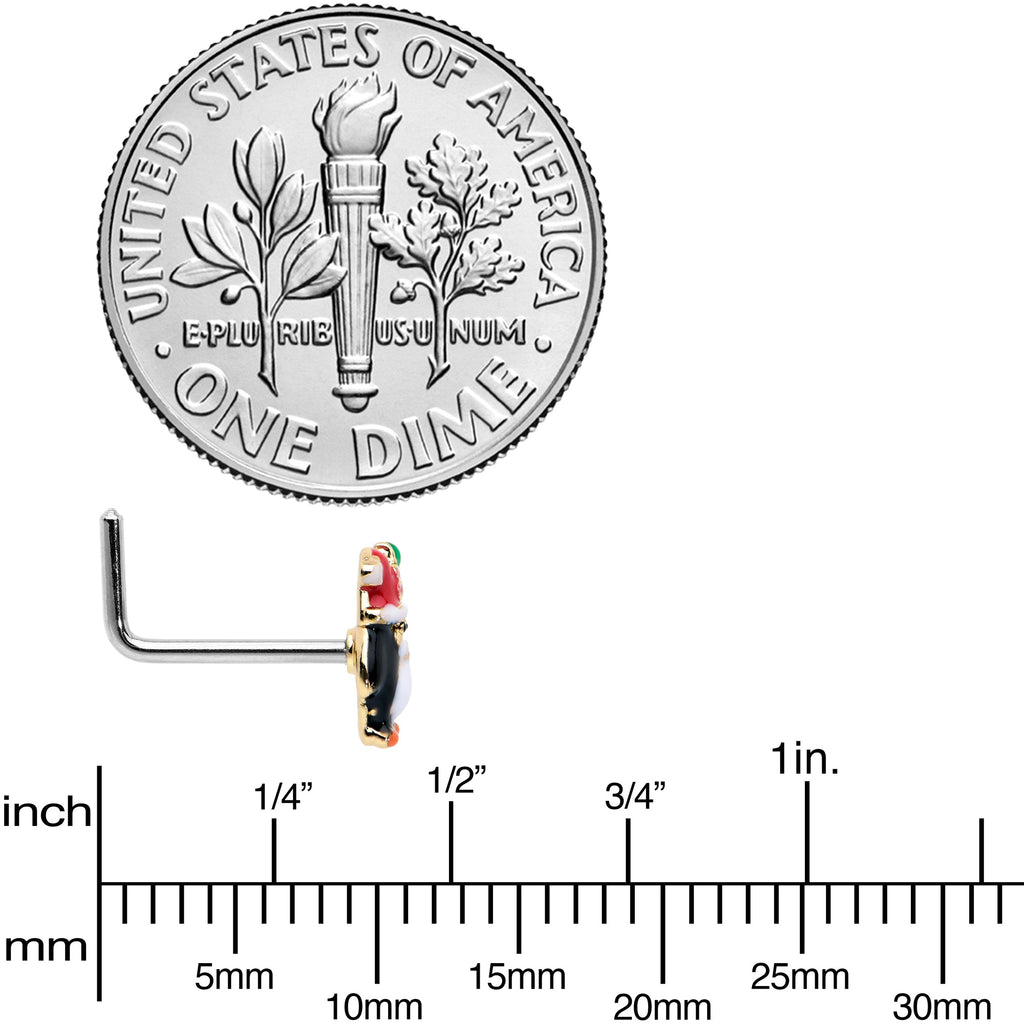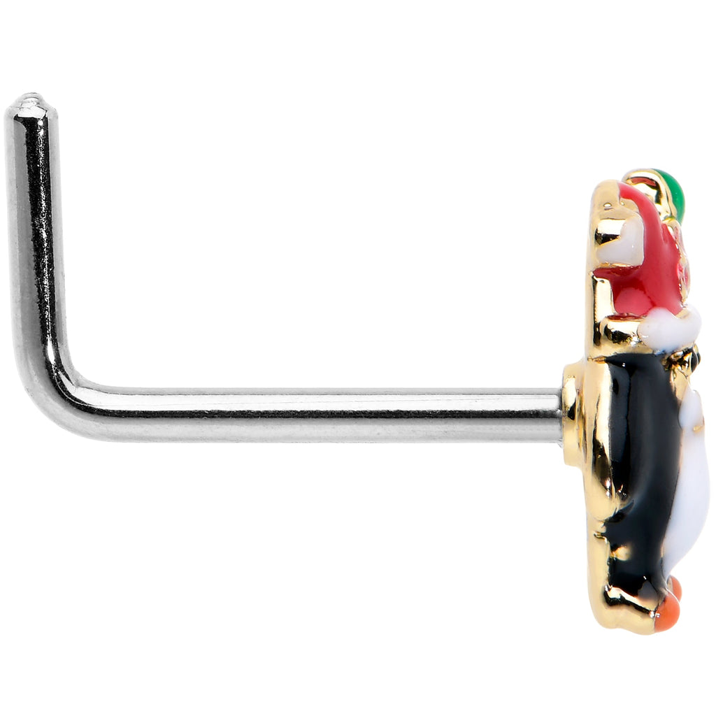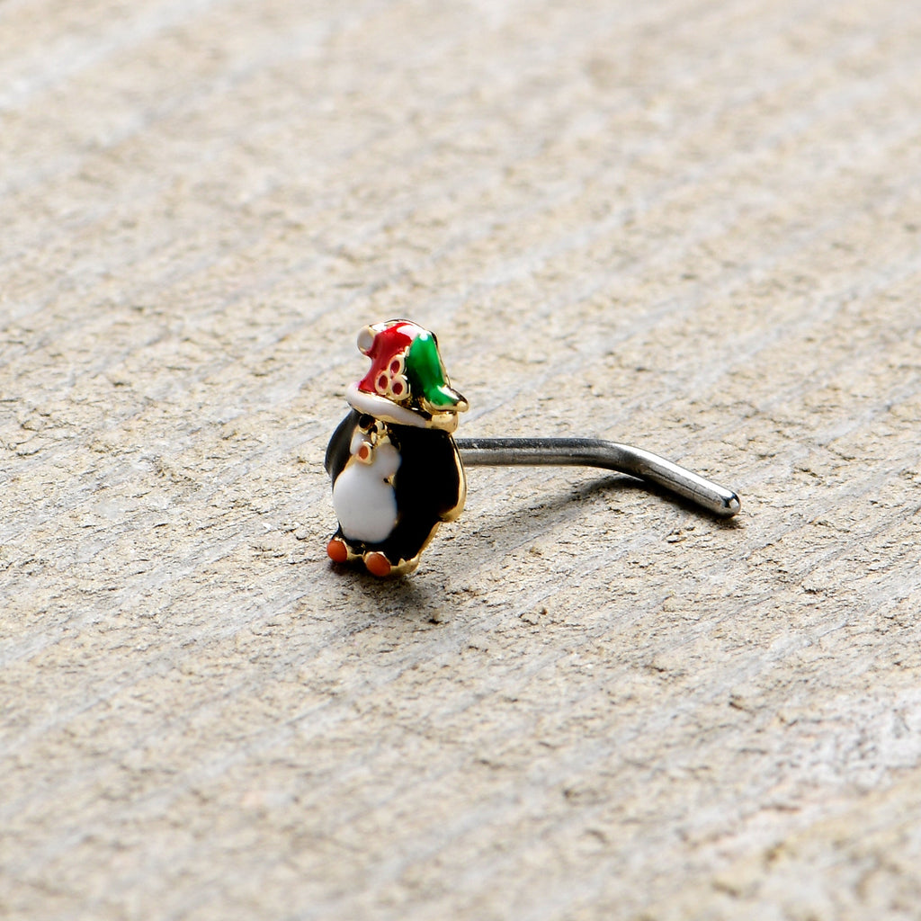 20 Gauge 7mm Holly Hat Penguin Holiday L Shape Nose Ring