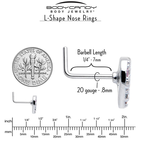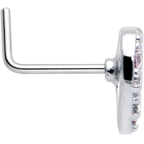 20 Gauge 7mm Pink CZ Gem Lattice Heart L Shape Nose Ring