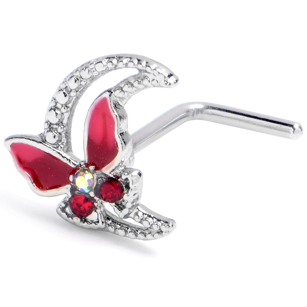20 Gauge 7mm Pink Gem Butterfly Pink Beauty L-Shape Nose Ring