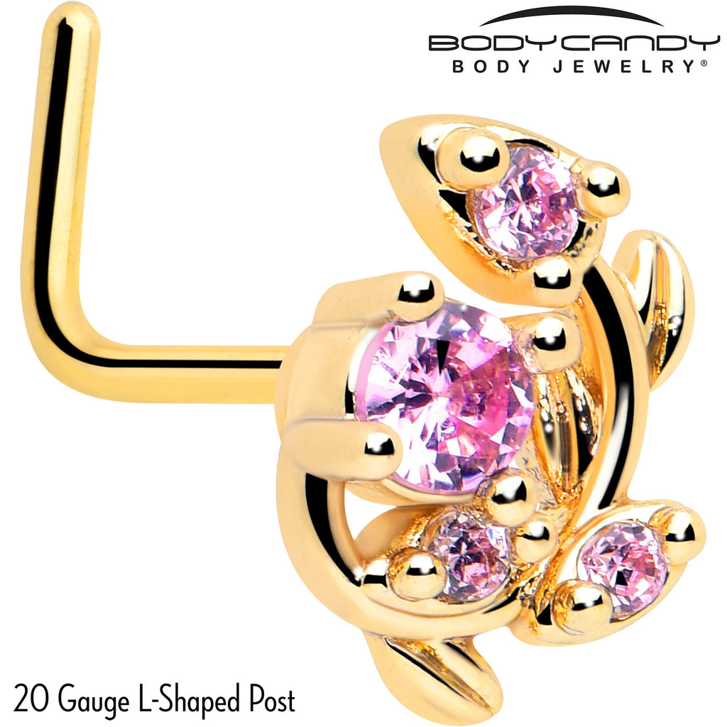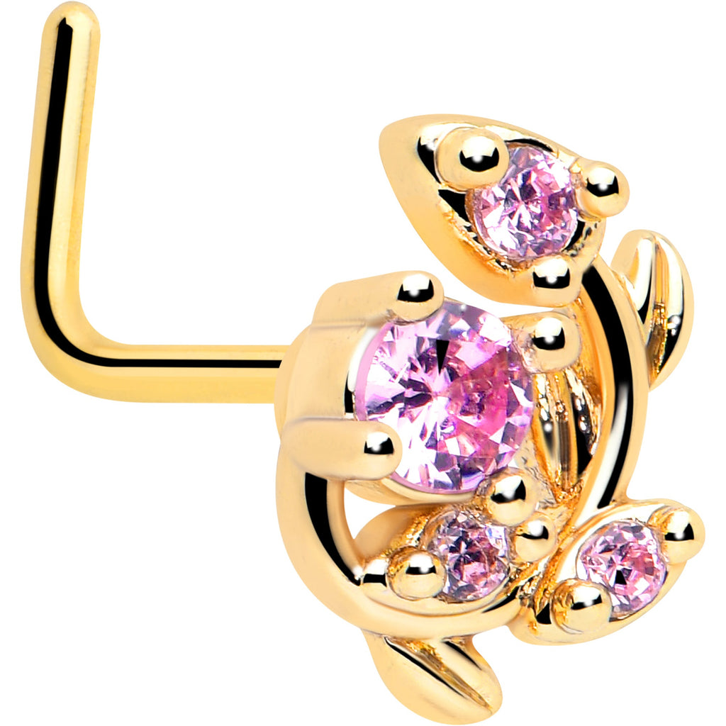 20 Gauge 7mm Pink Gem Gold Tone Twining Vine L Shape Nose Ring