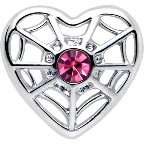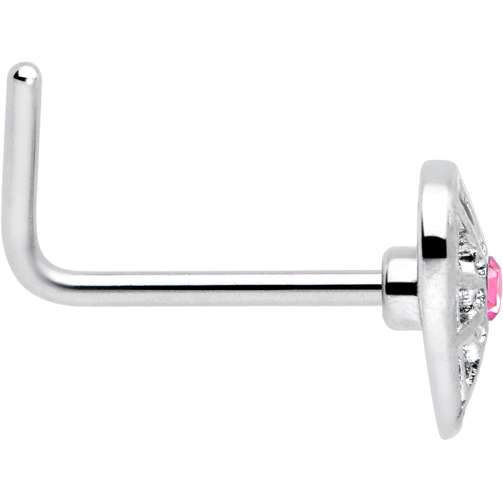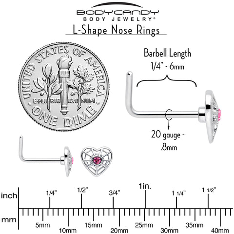 20 Gauge 7mm Pink Gem Spiderweb Heart Love L Shape Nose Ring