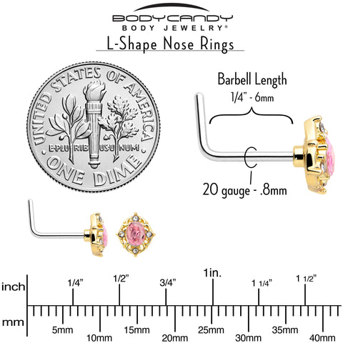20 Gauge 7mm Pink Tourmaline Golden Wondrous Glamour L Shape Nose Ring