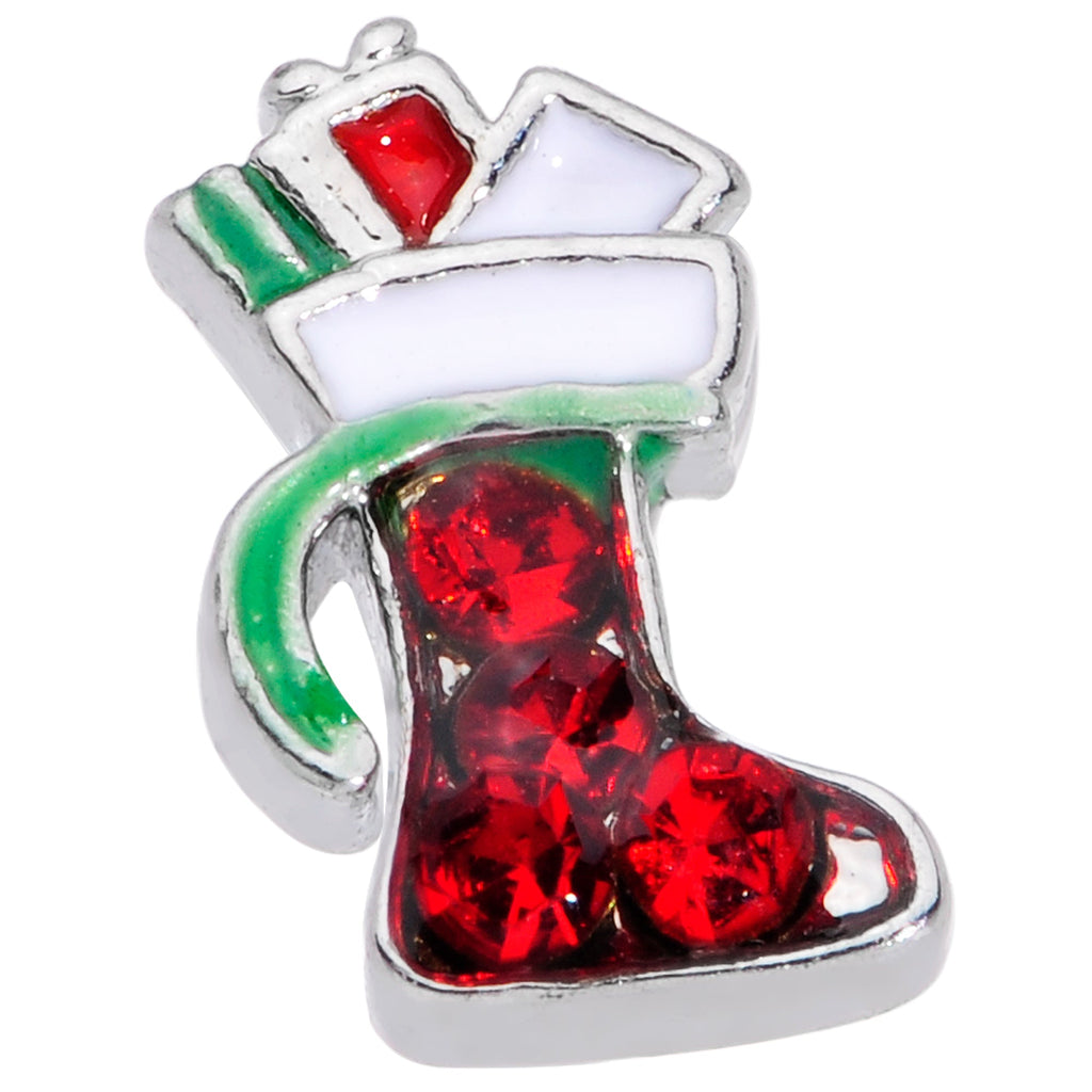 Someone must have been awfully good to get all the gifts on this 20 gauge nostril ring! It's made with a 7mm length at the bend 316L surgical grade stainless steel L-shaped post. It features a Christmas stocking charm set with red gems. The stocking is embellished with white trim and features multicolor packages appearing to peek from the top. This is one stocking you won't want to hang over the fire when you can have it in your nostril piercing instead!Specifications