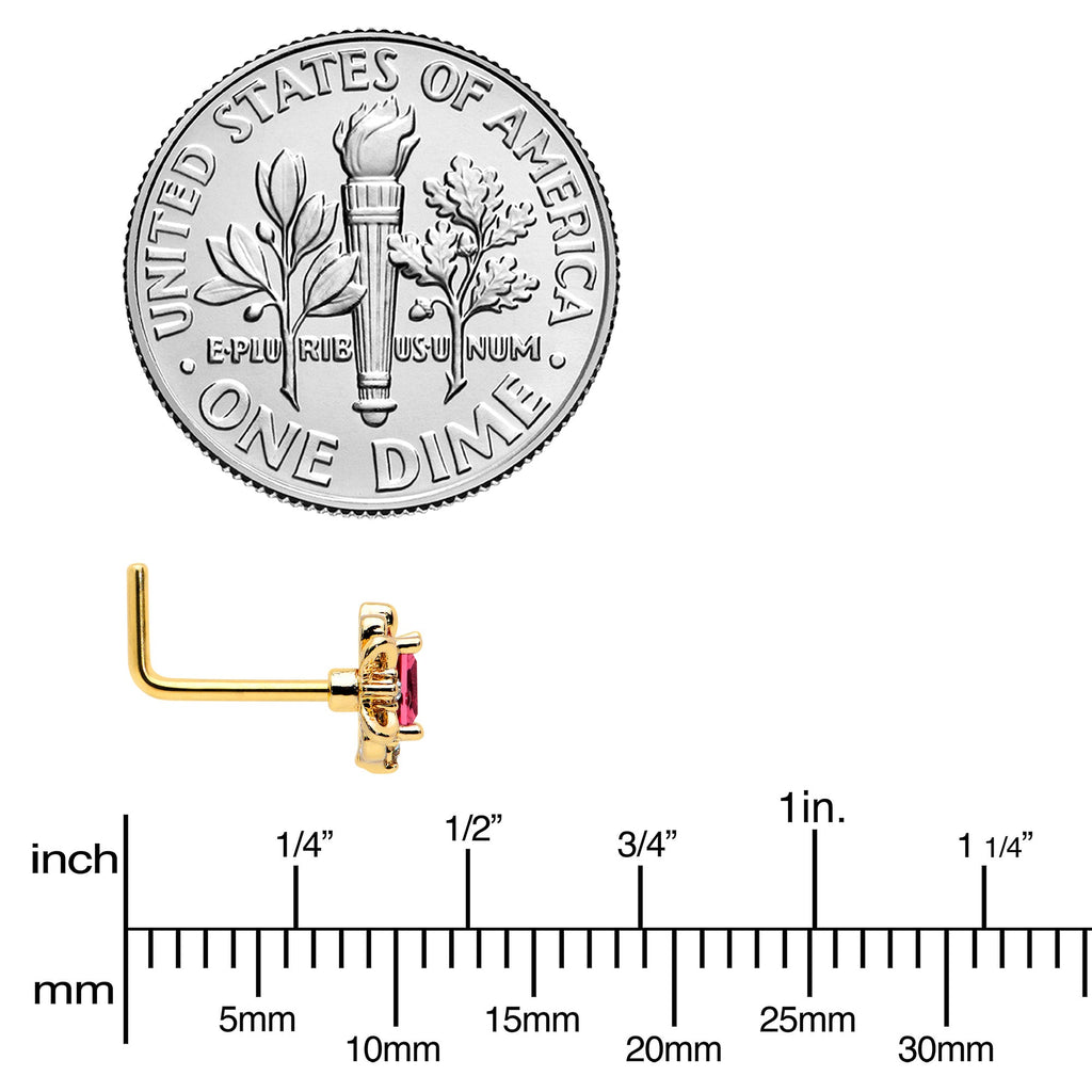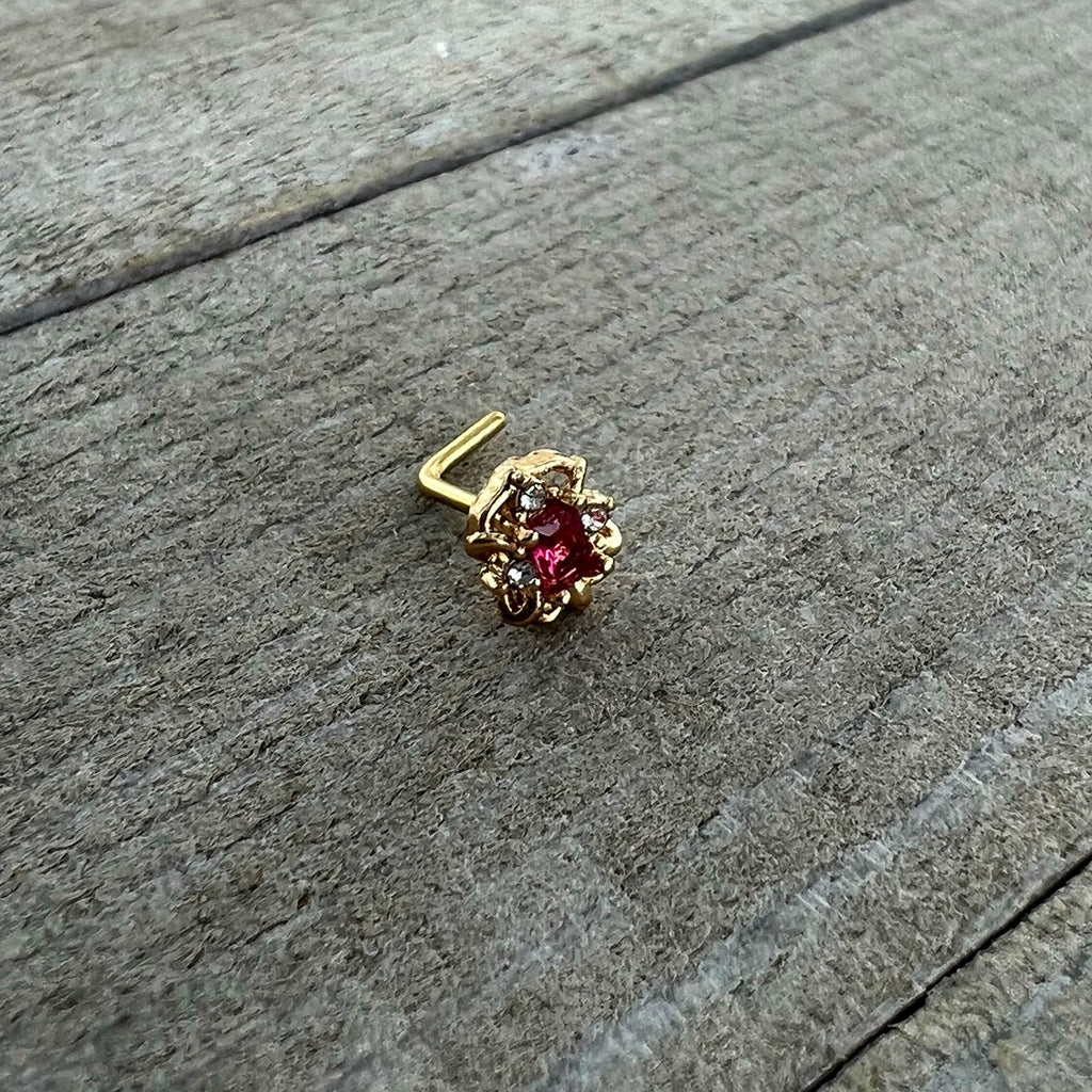 20 Gauge 7mm Red Gem Gold Tone Regal Escutcheon L Shape Nose Ring