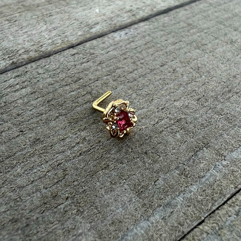 20G 7mm Red Gem Gold Tone Regal Escutcheon L Shape Nose Ring