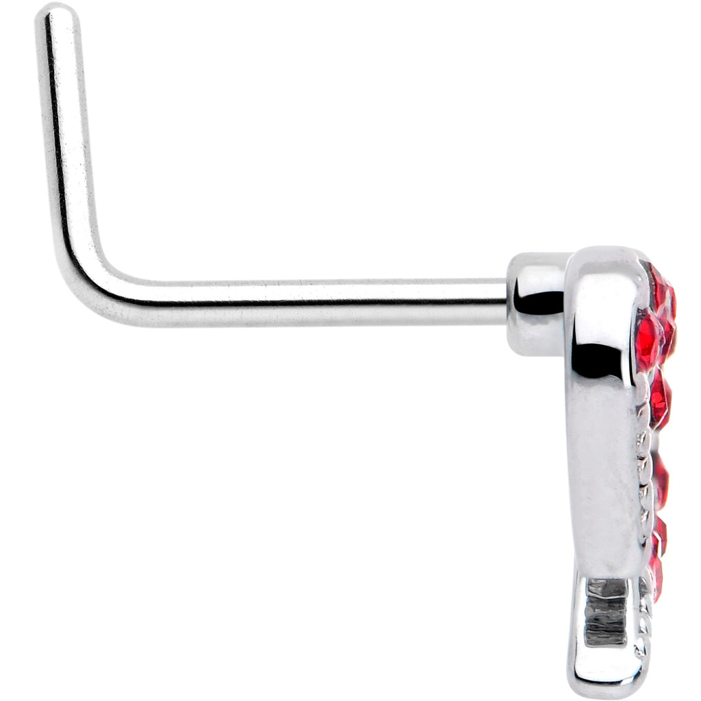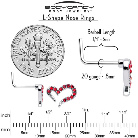 20 Gauge 7mm Red Gem Stylized Heart L Shape Nose Ring