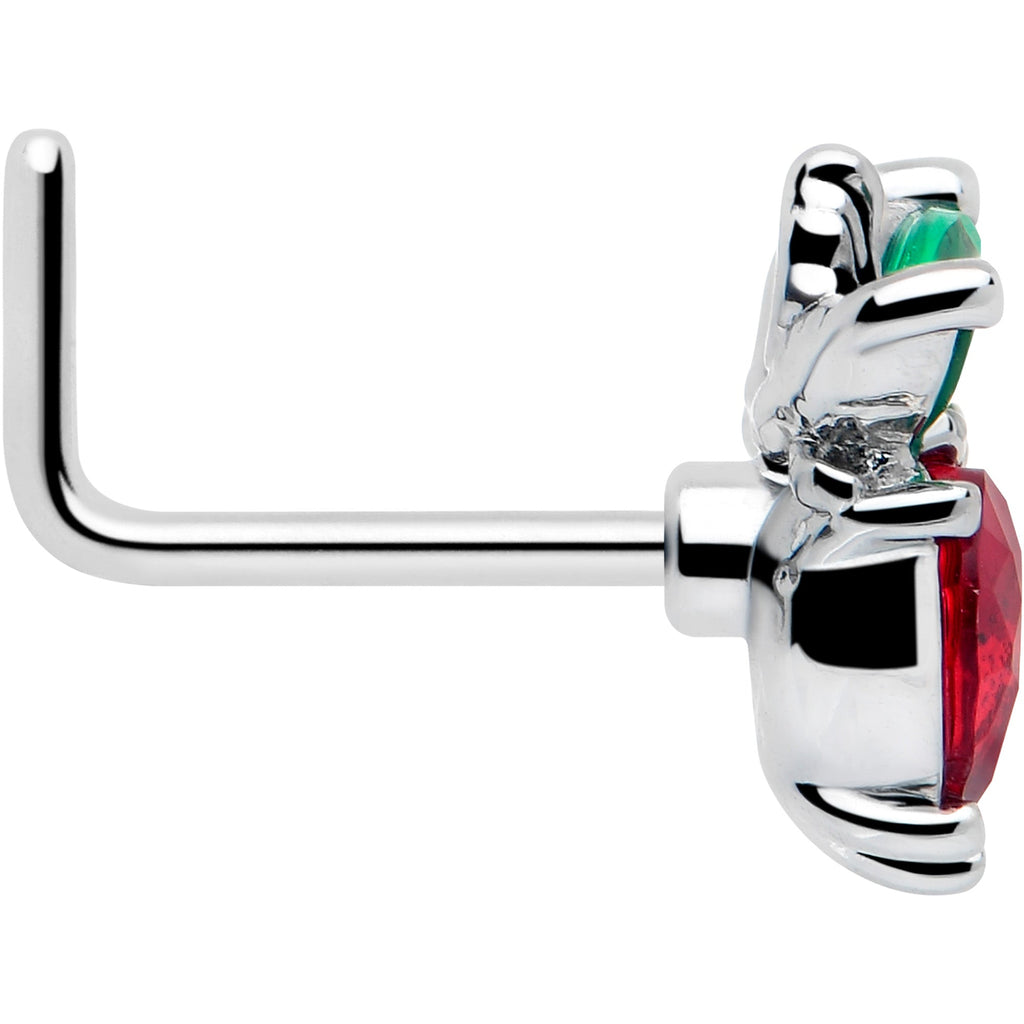 20 Gauge 7mm Red Green Gem Strawberry Heart L Shape Nose Ring