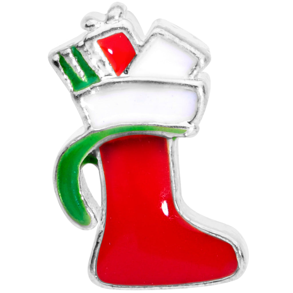You could hang your stocking by the fire but it would look much cuter sitting in your nostril piercing with this 20 gauge nostril jewelry! Made with a .27" durable 316L surgical grade stainless steel post, this nose ring features a charm of a red and white Christmas stocking charm. The holiday stocking features a white top and green ribbon detailing. The overall look is both subtle and festive. Don't put your stocking by the fireplace - put it in your nose piercing!Specifications