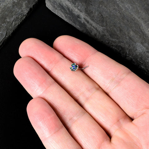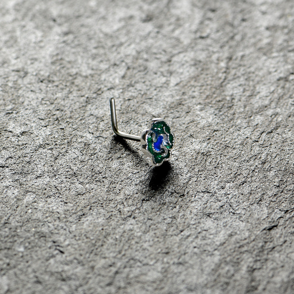 20 Gauge 7mm Spring Flower Green Blue L Shape Nose Ring