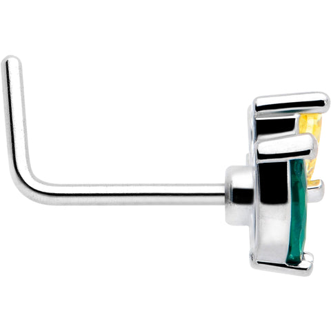 20 Gauge 7mm Yellow Green CZ Gem Love Flower L Shape Nose Ring