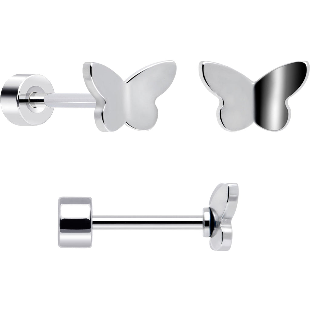 20G Aurora Gem White Orb Butterfly Flatback Earring Set of 6