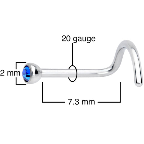 Don't let your nostril piercing get screwed up by inferior jewelry - grab one of these 20 gauge nostril rings instead! It features a 1/4" length at the bend post and is made with solid Grade 23 implant grade titanium. This subtle but stylish nose ring features a 2mm blue press fit gem end for a look that's fashionable but not over the top. It is designed for a left side nostril piercing and has a curving design that makes for comfortable wear and easy insertion. Comfortable, colorful, and quality - it's everything you could want for your nostril piercing in one petite package!Specifications