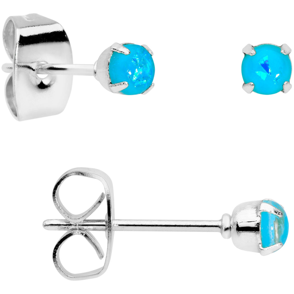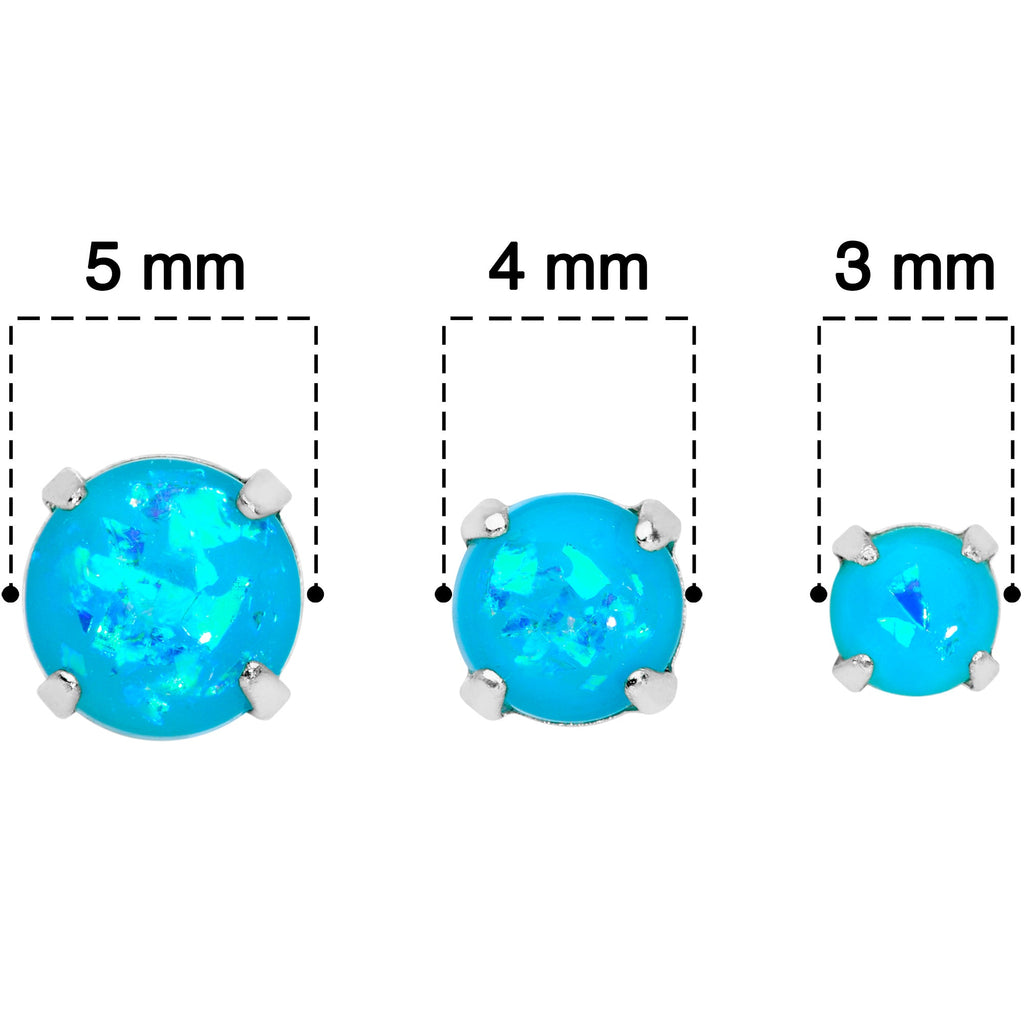 20 Gauge Blue Faux Opal 3mm to 5mm Post Stud Earrings Set of 3