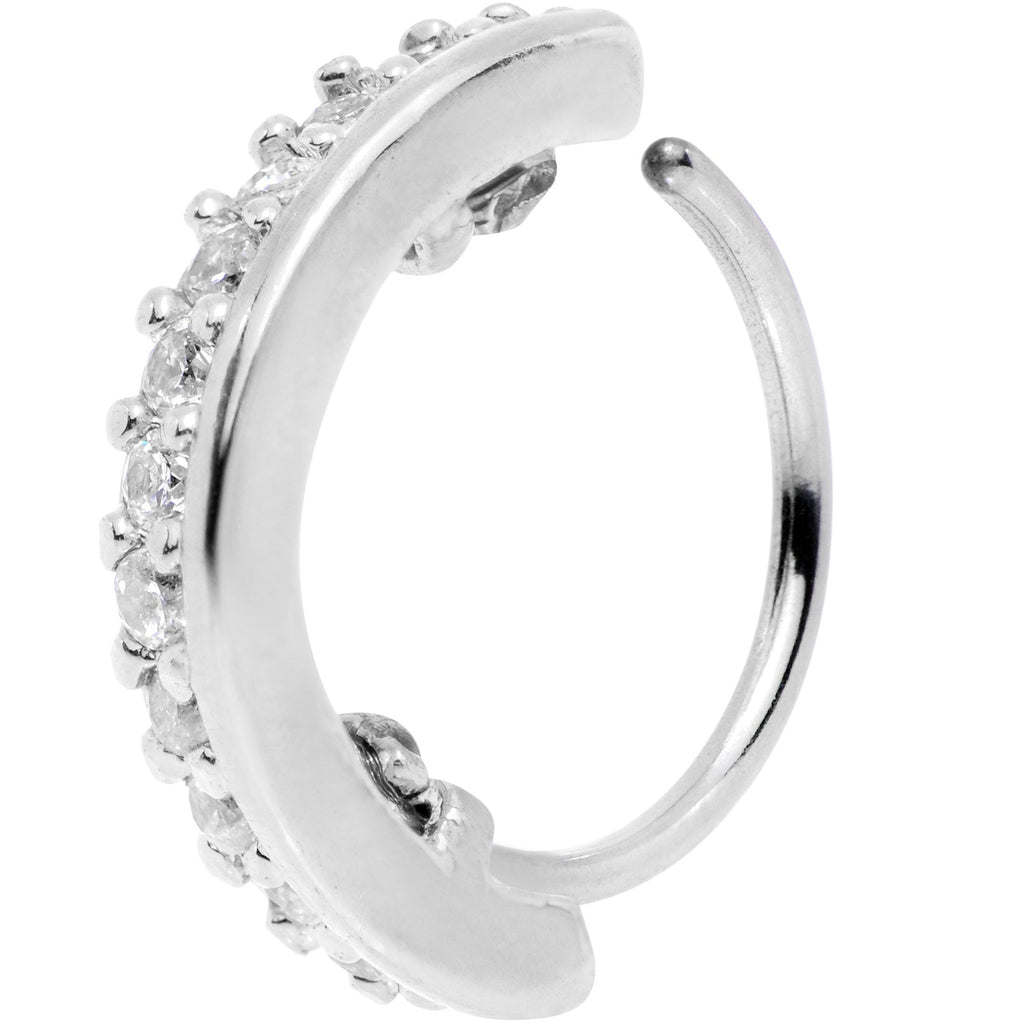 If you're into simple and easy to use universal jewelry this pretty 20 gauge nostril ring is right up your alley. Made with an adjustable 8mm durable 316L surgical grade stainless steel circular ring, this nose hoop is set with a fashion band set with clear gems and features ends that can be twisted open and then twisted shut again to easily to fit into your nose piercing. This universal body jewelry can be used for multiple piercings including your nostril, cartilage, or any other place that is a perfect fit for you!