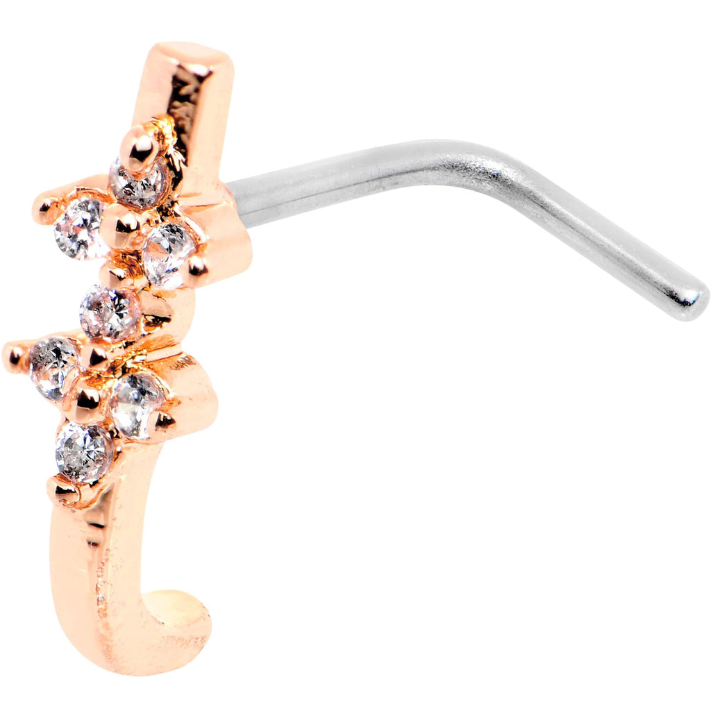 20 Gauge Clear CZ Rose Gold Tone Bling Faux Hoop L Shaped Nose Ring