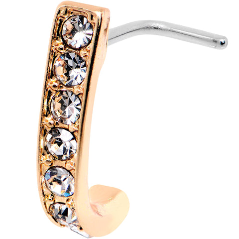 20G Clear CZ Sleek Rose Gold Tone Faux Hoop L Shaped Nose Ring