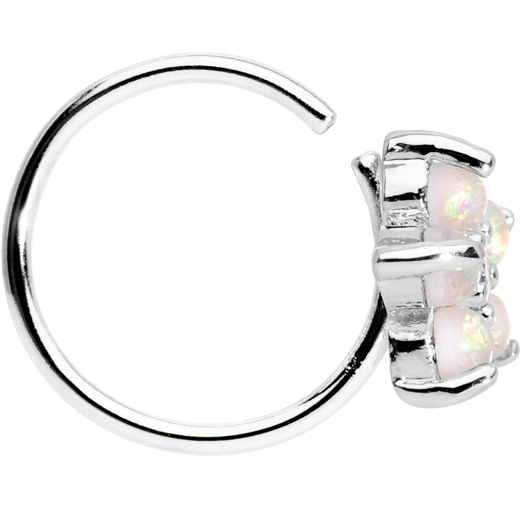 If you're into floral style this pretty 20 gauge nostril ring is right up your alley. Made with an adjustable 8mm durable 316L surgical grade stainless steel circular ring, this nose hoop features a flower charm formed from white faux opals and a clear cubic zirconia center gem. This universal jewelry features ends that can be twisted open and then twisted shut again to easily to fit into your nose piercing. This universal body jewelry can be used for multiple piercings including your nostril, cartilage, or any other place that is a perfect fit for you!