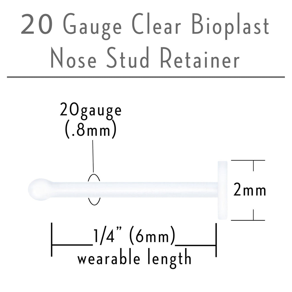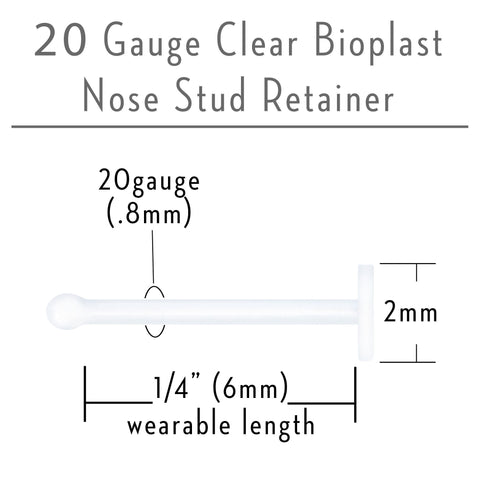 20 gauge nose retainer. This bioplast flat head nose piercing retainer will conceal your nose piercing. Bioplast nose retainer.