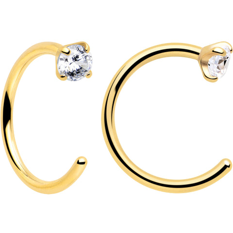 20G Clear Gem Gold Tone Implant Grade Titanium Open Hoop Earrings