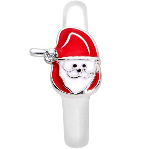 Santa looks delighted to be dangling from this 20 gauge nose ring that looks like a hoop and you would be too! Made with a 5mm length at the bend durable 316L surgical grade stainless steel L-shaped post, Santa is inlaid with color to highlight his traditional red finery and white beard and his jaunty hat is tipped with a clear gem for some extra holiday cheer. He'll not only bring you some holiday cheer as well, he'll never tell a soul that you aren't really wearing a hoop!Specifications